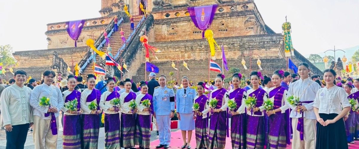 และทรงประดับสร้อยสังวาลถวาย พระพุทธเฉลิมสิริราช (พระแก้วหยกเชียงใหม่)พร้อมทั้งประกอบพิธีพระขวัญ และสักการะ พระเจ้าอุ่มเมือง (พระเจ้าแป๊ขึด)ณ วัดเจดีย์หลวง อำเภอเมืองเชียงใหม่ จังหวัดเชียงใหม่